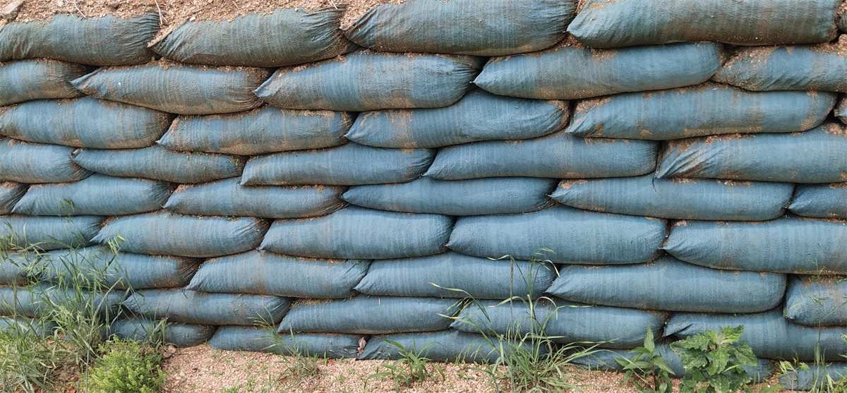 袋式擋土墻工法廣泛應(yīng)用于生態(tài)環(huán)保土工袋生產(chǎn)中,袋式擋土墻工法是其一種行之有效的方法。因為生態(tài)袋式擋土墻的型式類似于疊塊式擋土墻,都是以疊塊形式建造的,其穩(wěn)定性(解釋:牢固、穩(wěn)定;無變化)的性質(zhì)也類似于重力式擋土墻,都是通過墻的重量來提供穩(wěn)定性。